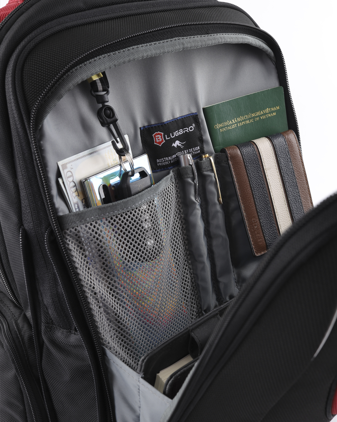 Ngoài những ngăn chính thì LUGBRO còn thiết kế thêm những túi bí mật an toàn rộng rãi, cất giữ tài sản quý, yên tâm không sợ mất trộm trên đường đi du lịch hay là chơi thể thao,à còn có ngăn chống sốc, ngăn chai nước, đại giá cần đẩy Vali có thể gắn chặt vào cần kéo Vali thuận lợi cho những chuyến công tác, du lịch Đặt biệt có NGÕ USB THÔNG MINH.