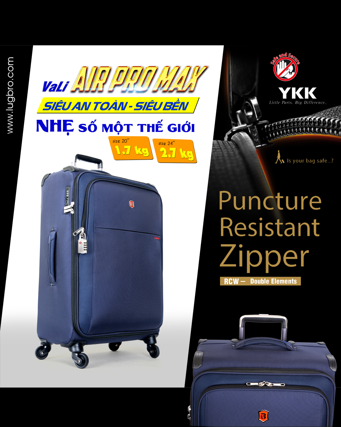 LUGBRO đã và sẽ cam kết luôn luôn cung cấp cho khách hàng những sản phẩm đẹp nhất, tốt nhất, nhẹ nhất, nhiều tính năng nhất, bền nhất, và dịch vụ hậu mãi tốt nhất trong ngành thời trang hành lý.