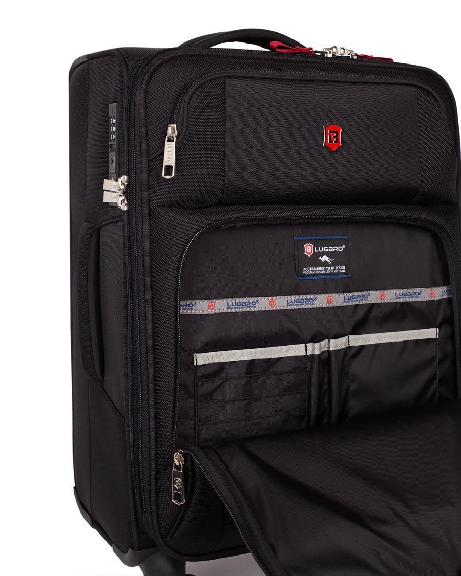 Vali Doanh Nhân bảo hành trọn đời Lugbro Biz 56L, hành lý xách tay chuẩn toàn cầu mới nhất từ thương hiệu cao cấp Lugbro có thiết kế sang trọng, thời trang, được chế tạo để phục vụ cho các chuyến công tác cũng như các chuyến du lịch. Không gian sử dụng rộng rãi có nhiều ngăn chứa giấy tờ, tài liệu, quần áo, túi đựng vật liệu cá nhân, Laptop 17 inch, máy tính bản, pin sạc, ổ cứng…, được phân chia nhiều ngăn hợp lý giúp việc phân loại, sắp xếp đồ dùng một cách thuận tiện, không bị lẫn vào nhau và đặc biệt có ngăn bí mật chứa thiết bị chống thất lạc hành lý toàn cầu.